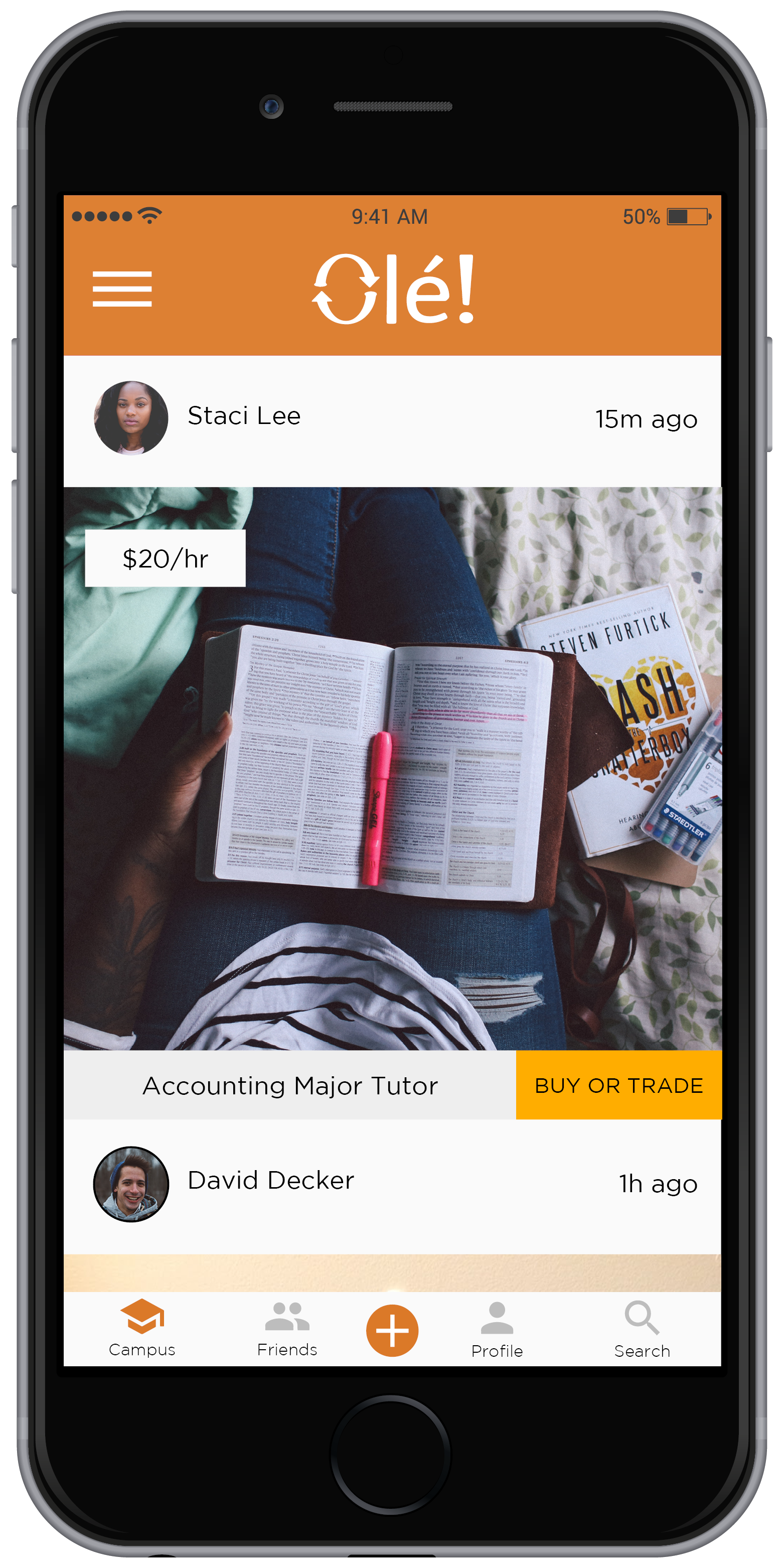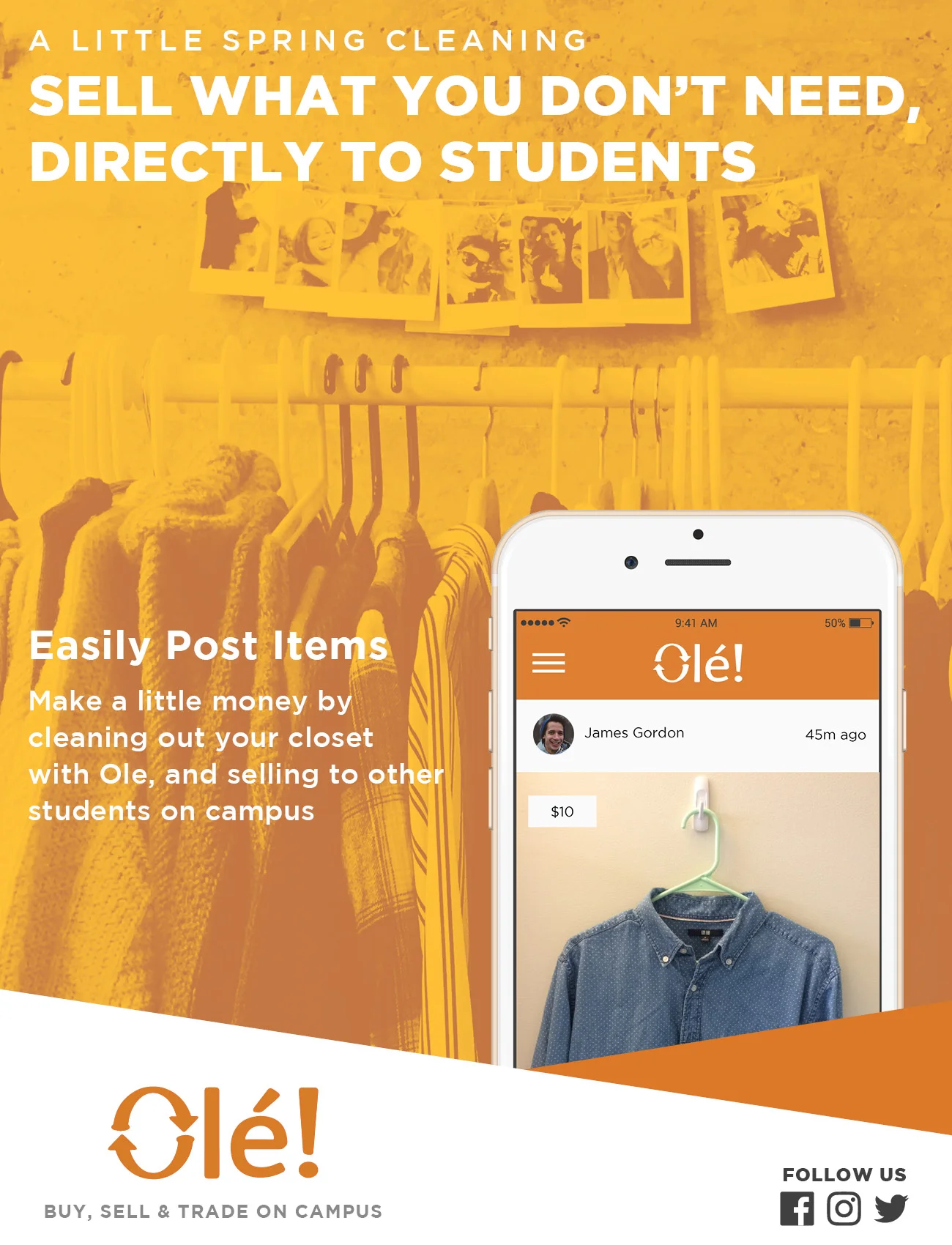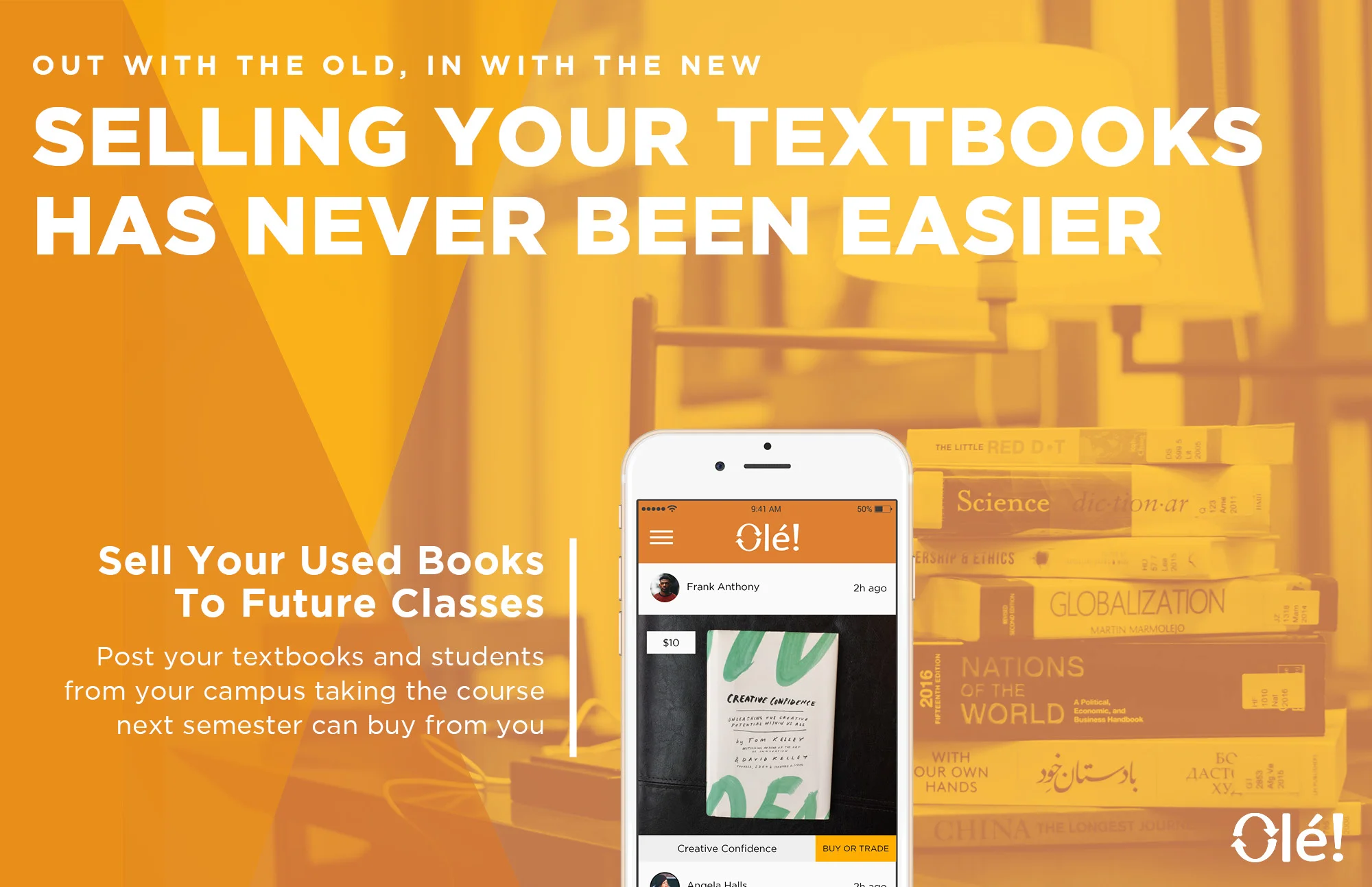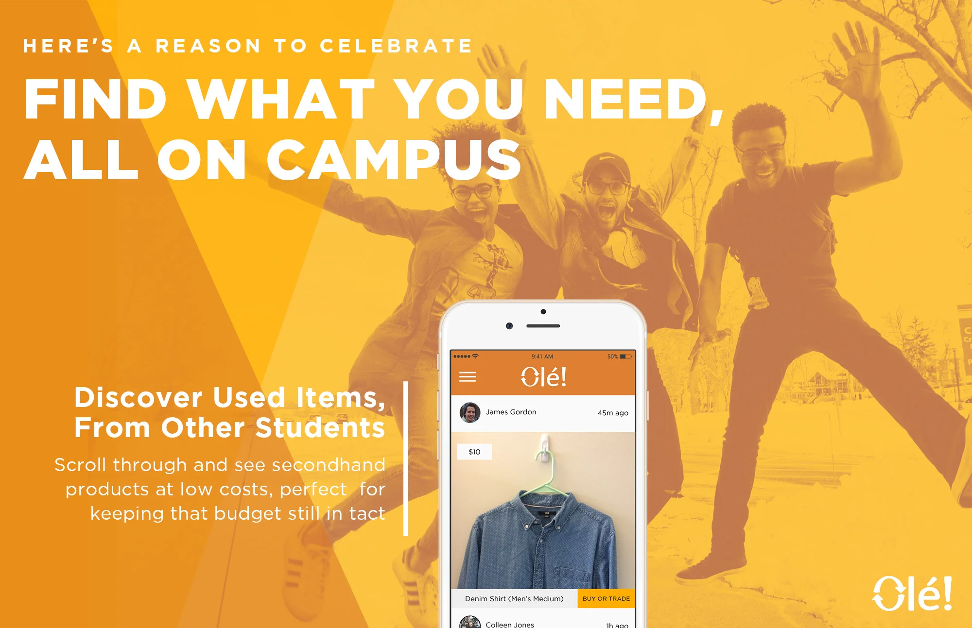 Olé is a mobile app that serves as an online marketplace for college campuses, where students are able to sell and buy items directly to their own community.